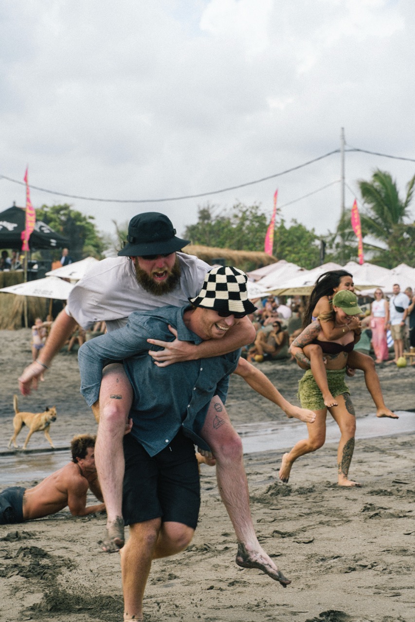 Understanding that a tide change can kill even the best of conditions, a boring heat or two was guaranteed. That’s why we've made the Twinkle Toes a nimble little gal. Slow heat? Time for some extracurricular shenanigans. How about a piggy-back race for a jug of mango daiquiris? There’s nothing like a mango/white rum combo to get people in the mood. The Thomas team looked impossible to beat: Jake Henry and Nic Brewer, team Big Red, a team of strength and power. They took down the American/Uraguary team on the outbound run, and were on their way to a win before Henry got ankle tapped by the ghost of Ibu Tinny. I can’t remember who took the jug of daqs, but I know for sure it was the spectators who really won. Stay nimble folks.